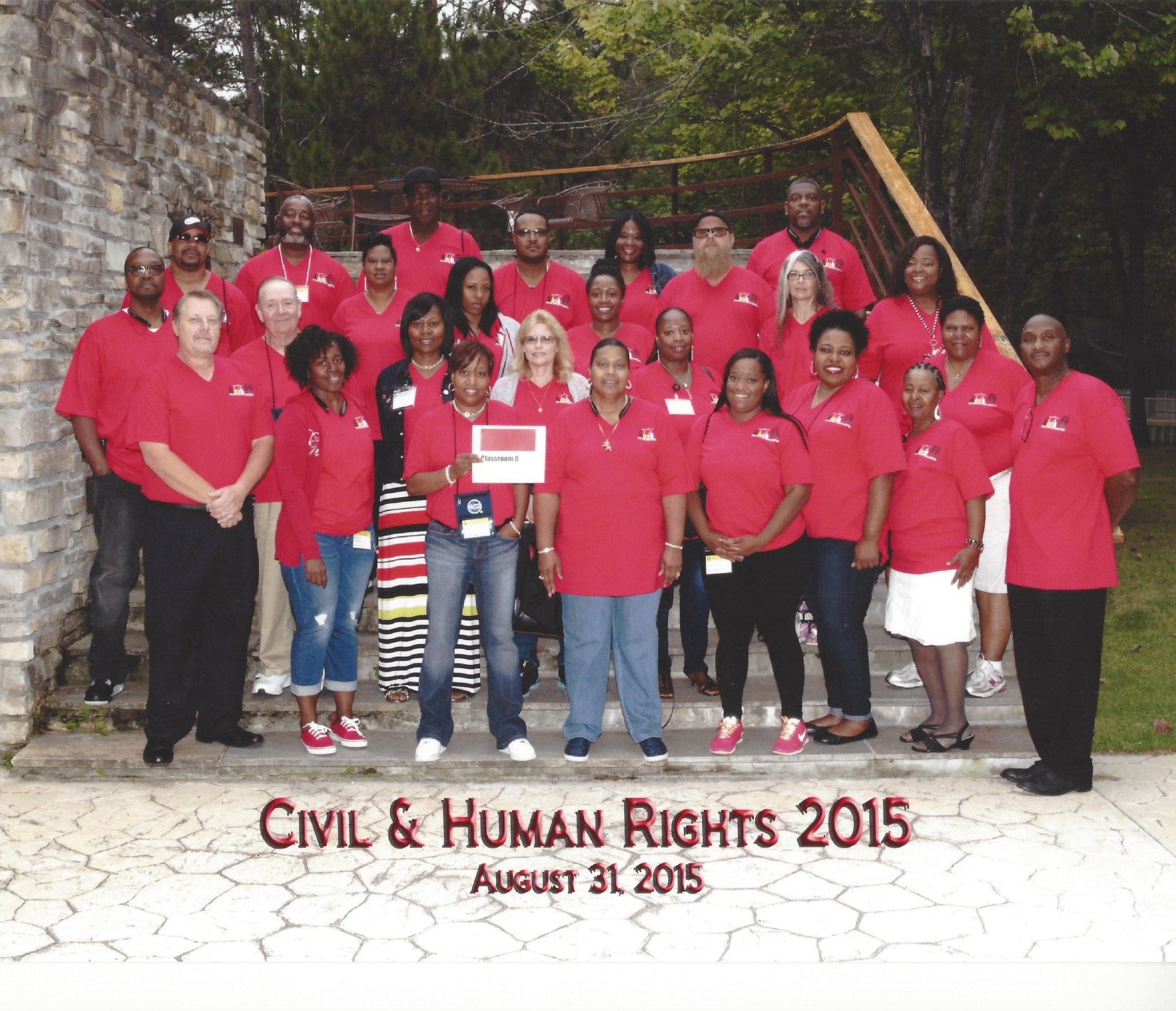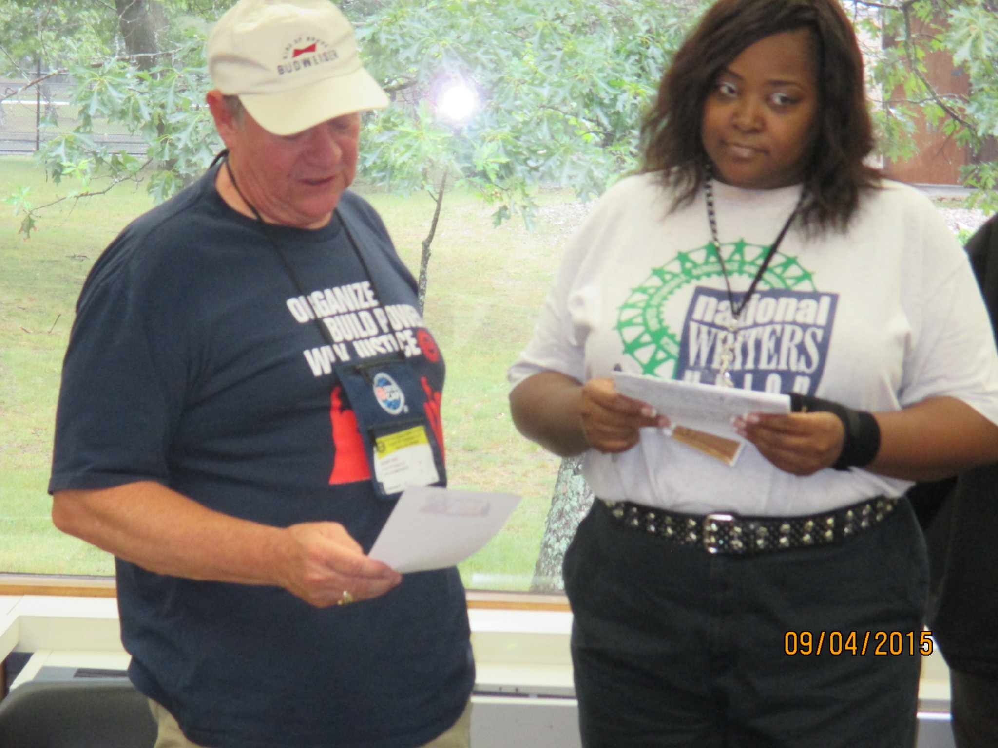 Working with a Union Brother in a UAW Workshop at Black Lake in 2015.