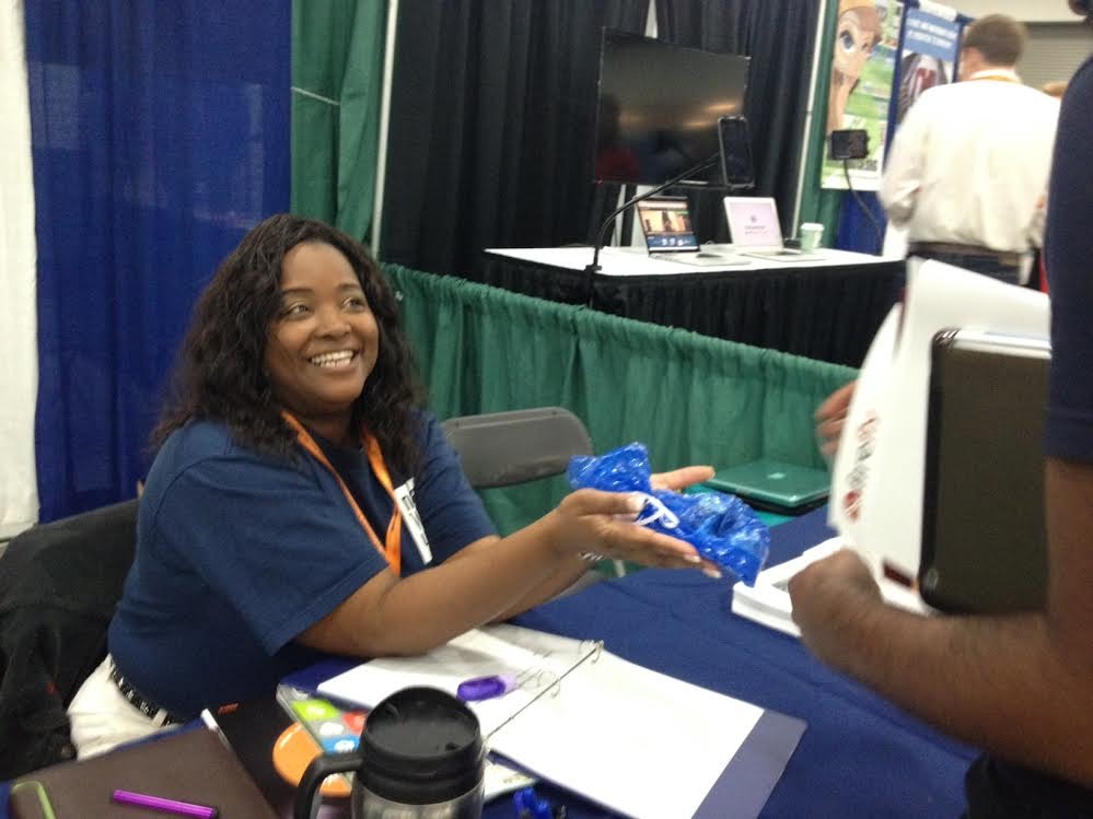 Giving away "Our Writer Blocks" from NWU at Netroots Nation in Detroit 2014.